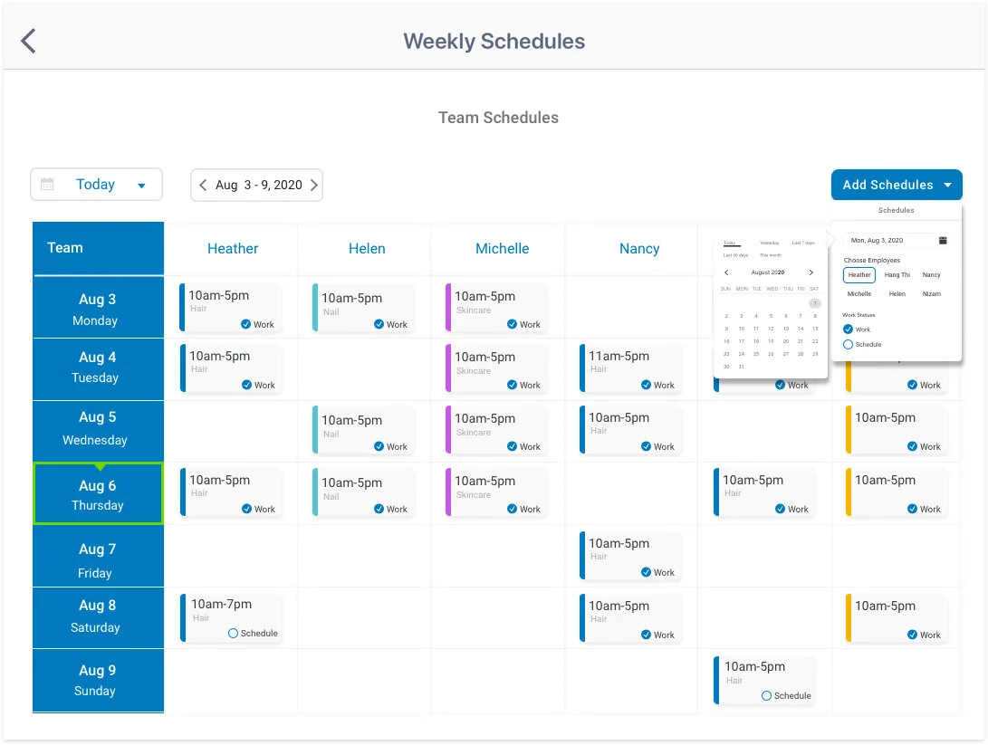 The client addressed the main pain point during our initial meeting. Issue # 1: Admin Area- needs to be more organized. Issue # 2: Salon Earnings Screen- needs to have specific earning details. Issue # 3: Weekly Schedule- make it easier for the salon owner to create a weekly employee schedule.